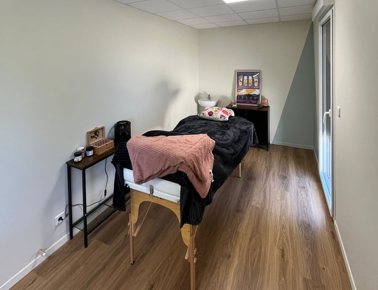 Je vous accueille dans un espace chaleureux et apaisant, spécialement conçu pour votre bien-être, où chaque détail invite à la détente et à la sérénité.